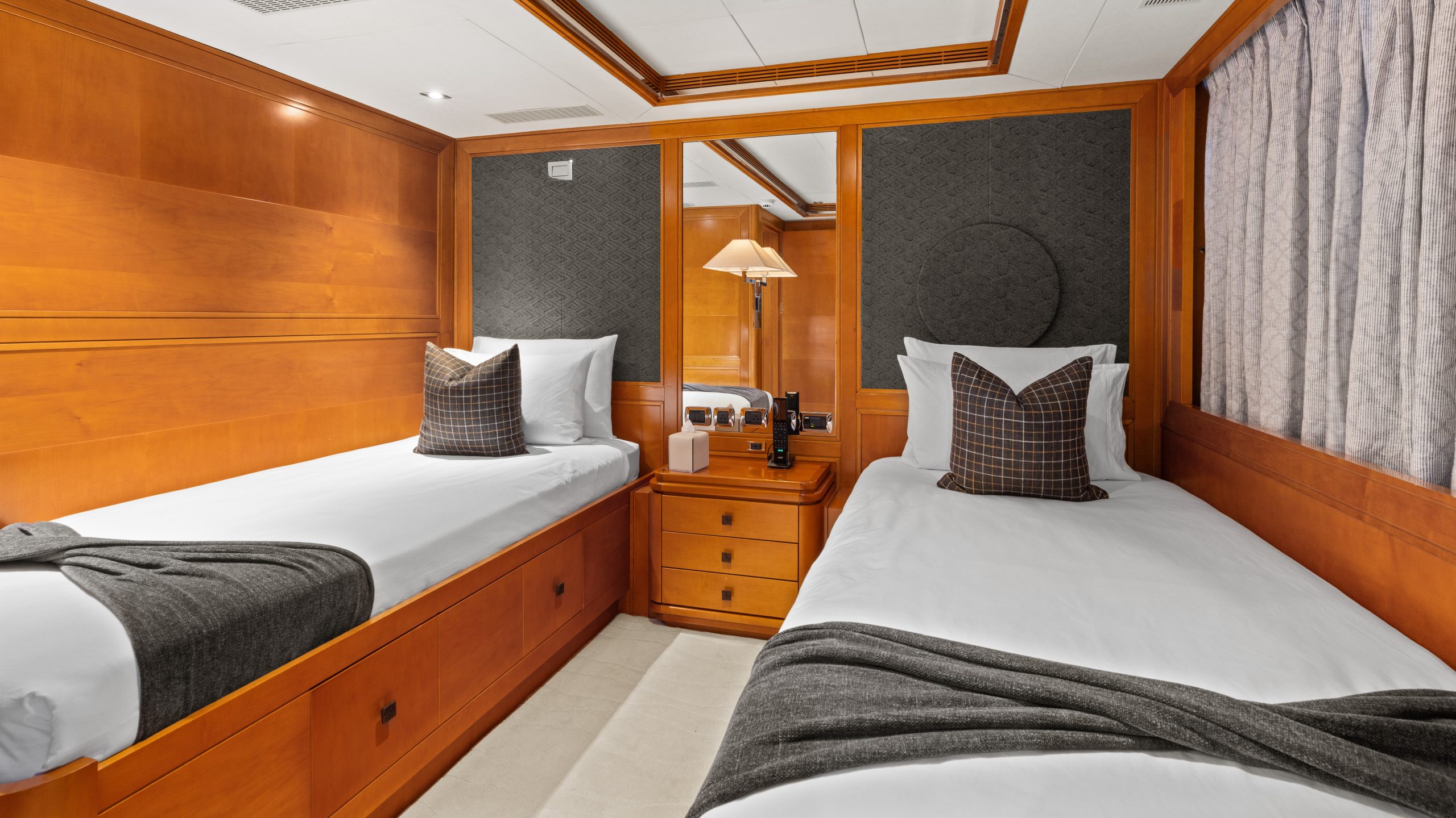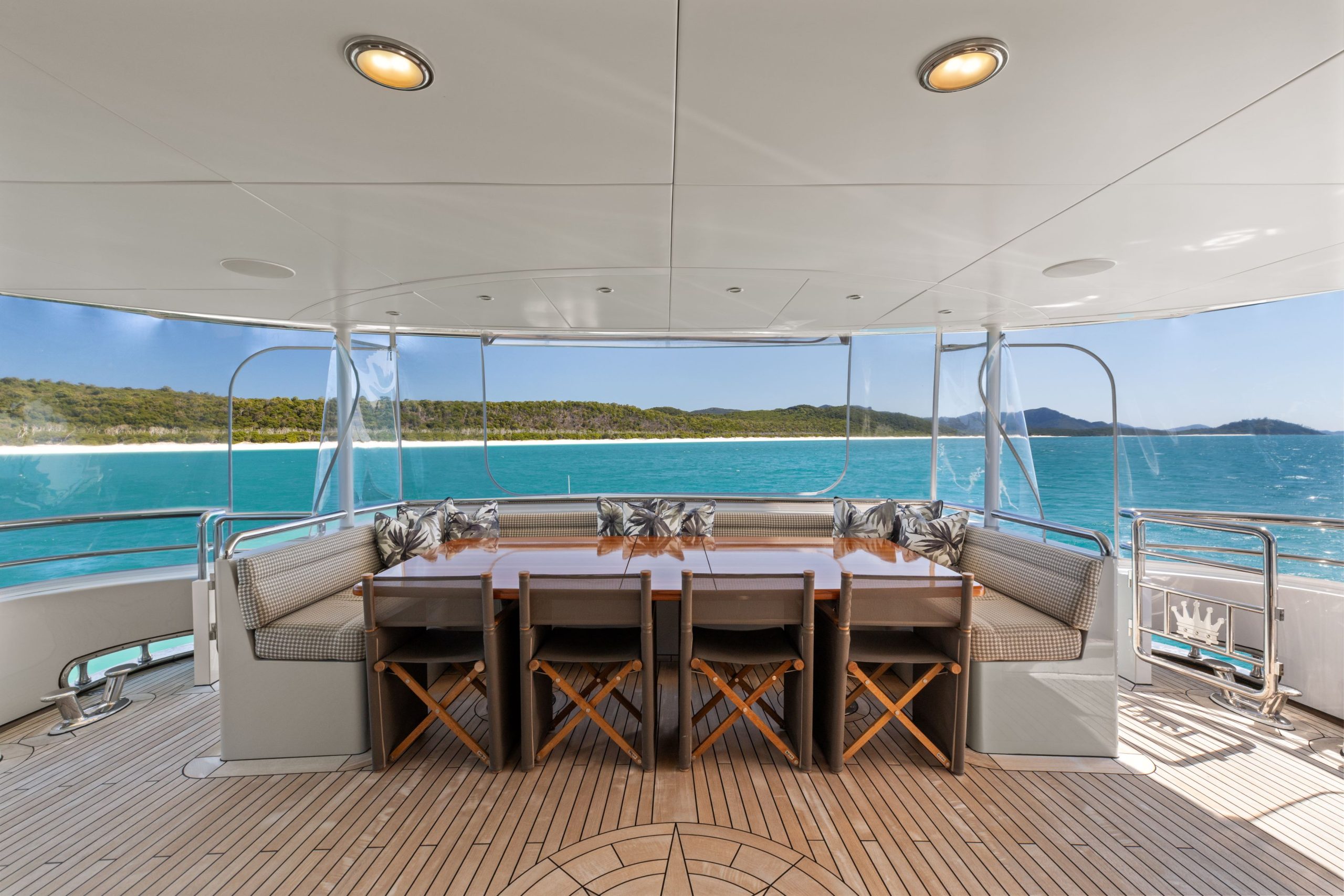 Uniquely spacious, she is able to accommodate up to 12 guests in five luxury staterooms and boasts sophisticated interiors, as well as vast deck space for relaxing and sunbathing. With cruising range of 4,000 nautical miles she is the ideal super yacht for exploring the breathtaking Australian Coast.